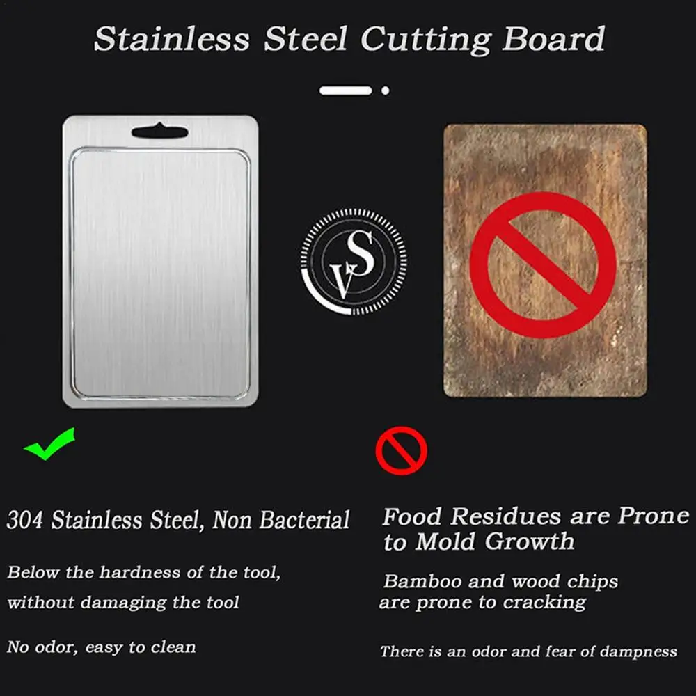 1.Robust Build: Ideal for frequent use in the kitchen, this cutting board features high-quality food grade stainless steel construction, making it resistant to wear and tear, rust proof, and easy to clean and hygienic